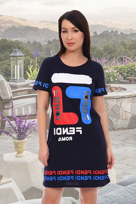 Туника женская прямого силуэта, горловина круглая, обработана обтачкой, рукав короткий втачной, низ изделия обработан на плоскошовной машине, на полочке и рукавах принт.