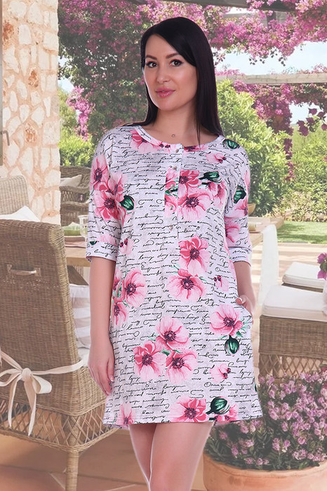 молодежная туника короткая ,3/4 рукав с манжетом, горловина окантована, застежка планка с пуговицами