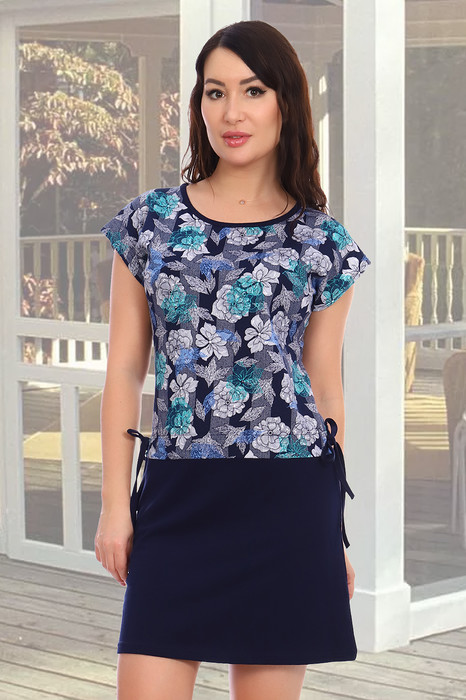 Туника домашняя с отрезной юбкой из отделочной ткани и кулисой по линии бедер.
