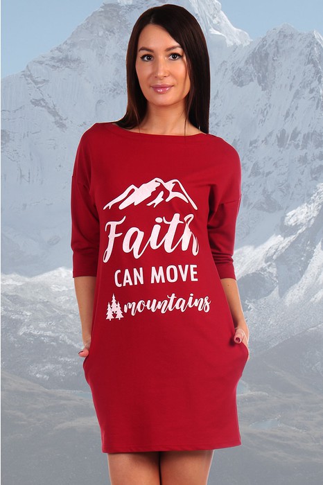 Элегантная туника из футера с лайкрой. Рукава чуть ниже локтей, общая длина до середины бедра. Принт в виде очертаний гор, елочек и надписей. Три варианта расцветки — синяя, антрацитовая и бордовая. Размеры от 42 до 56. Есть розница.