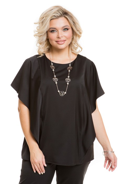 Нарядная туника, прямого силуэта, выполнена из эластичной шелковистой ткани. Перед и спинка с рельефными швами. В рельефных швах втачные отделочные детали, имитирующие рукав-волан. Длина колана от горловины в 48 р-ре – 29 см. в 60 р-ре – 33 см. Овальный вырез горловины переда и спинки обработан обтачками. Туника без подклада и застежек. Длина изделия по спинке в 48 р-ре 66 см. в 60 р-ре 73 см.
