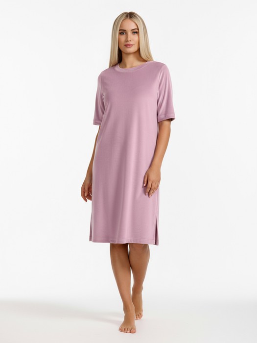 Туника женская из гладкокрашенного полотна «велюр стрейч», свободного покроя, с короткими втачными рукавами, горловиной овальной формы, обработанной втачной планкой и разрезами в боковых швах.