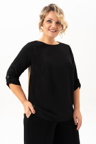 Туника женская из гладкокрашенного полотна «велюр стрейч», свободного покроя, с короткими втачными рукавами, горловиной овальной формы, обработанной втачной планкой и разрезами в боковых швах.