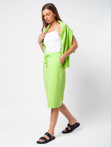 По передней половине юбки выполнены складки и левой стороны вертикальный шов, в нижней части которого обработан разрез.