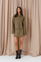 Юбка-мини свободного кроя. Выполнена из хлопкового трикотажного полотна. Без подкладки. Пояс не резинке со шнурком. Без застёжки. В боковых швах карманы. Длина юбки по боковому шву 40 см