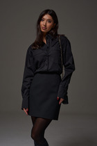 Юбка-мини прямого кроя. Выполнена из костюмной ткани серого цвета, декорированной сердечками. Силуэт - трапеция, брендированная подкладка. Застежка - потайная молния в шве заднего полотна изделия. Длина 42см.