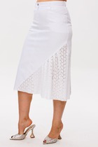 Юбка А-образного силуэта, на притачном отстроченном поясе на резинке. По переду с центральной застежкой на петли пуговицы. Юбка карманами в боковых швах, без подкладки..