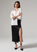 Когда хочется драматичности, но с шиком. Флирт на воланах, лёгкий ветер в сторону успеха и намёк: я – настроение, а не просто лук. Юбка в длине миди. Крой изделия с запахом. Есть крупные рюши по подолу изделия. Завязки на талии в тон основного материала.