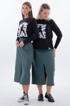 Юбка женская из легкой , струящейся ткани "тенсел", юбка длинны миди с карманами в боковых швах и складками по переду. Пояс со шлевками и застежкой на молнию и петлю и пуговицу. По центру переднего полотнища обработан разрез. Юбка декорирована съемным шнуром из основной ткани.