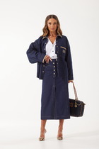 Заднее полотнище разрезное со средним швом, в котором у линии талии сделана застёжка на потайную тесьму "молнию".