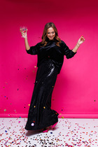 Топ прямого силуэта будет хорошо смотреться на различных типах фигуры. Он создаст эффект свободы и комфорта. Трикотажные материалы обеспечивают комфорт и подвижность. Пайетки придают ткани дополнительный блеск и текстуру.