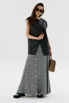 Юбка женская А — силуэта изготовлена из эко — кожи. Передние и задние детали юбки разрезные, отстрочены отделочной ниткой. На передних деталях обработаны косые карманы. Юбка на поясе, застежка на молнию петлю и  пуговицу. Юбка на подкладке, декоративная нашивка настрочена на поясе.