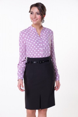 Юбка-карандаш из однотонной костюмной ткани. Модель на кокетке, дополнена шлевками под ремень. По бокам выполнены накладные карманы. В боковом шве – застежка на потайную молнию. Низ ровный, дополнен разрезом со встречными веерными складками. На подкладе.