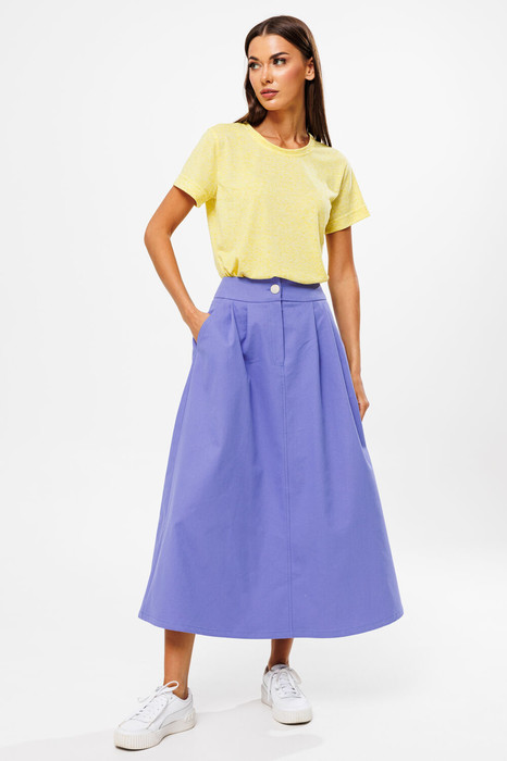 Удлинённая юбка-трапеция с разрезом по переду и карманами в боковых швах — это стильный и универсальный элемент гардероба, который подчеркнет вашу индивидуальность и добавит нотку элегантности в любой образ.  Изготовлена из премиального денима Tiffany, который отличается высоким качеством и долговечностью. Эта юбка идеально подойдёт для создания модных образов в стиле кэжуал и смарт-кэжуал.
