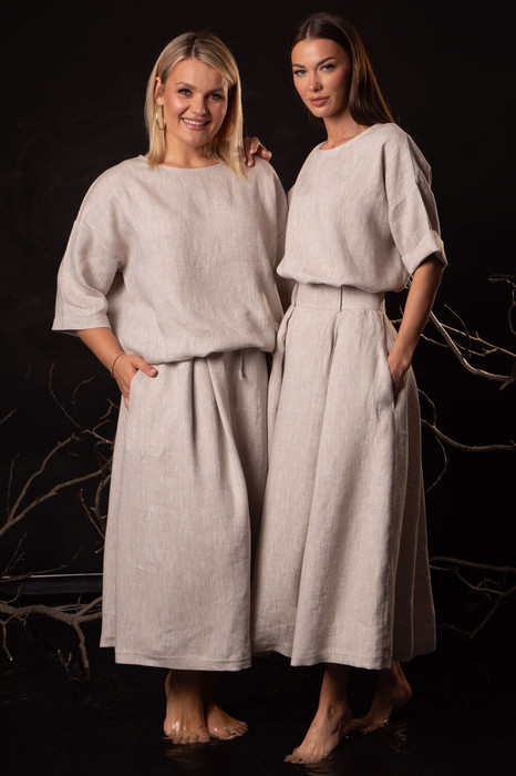 Элегантная женская юбка из белорусского льна с вискозой — идеальное сочетание природной эстетики, функциональности и комфорта. Изготовленная из премиального материала, она объединяет воздухопроницаемость льна и мягкость вискозы, создавая идеальный вариант для теплых дней. Встречные складки, боковые карманы и потайная молния по спинке делают эту модель уникальной, подчеркивая внимание к деталям и белорусское мастерство.