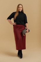 Vilatte Юбка с разрезом из эластичной эко-кожи D26.454 черный
