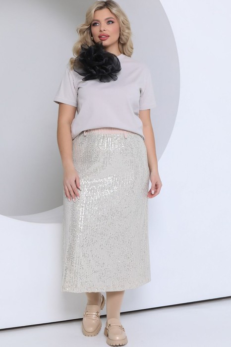 Расклешенная юбка из пайеток на сетке на притачном поясе с резинкой и шлевками.