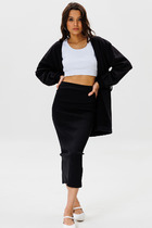 Юбка - солнце длиной миди из облегчённого денима с узким поясом. В боковых швах расположены карманы. Застежка на кнопки с цельнокроеной планкой. Длина около 94 см. Изделие без подкладки.