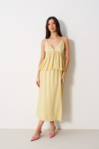 Юбка длиной миди прямая на резинке. Карманы в боковых швах. Разрез по переду.