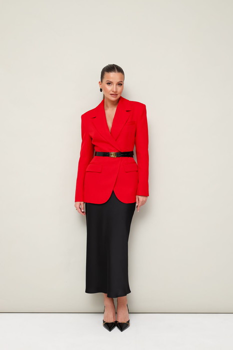 Юбка с кроем «по косой» в длине миди, пояс на обтачке, застежка в боковом шве на потайную тесьму молнию.