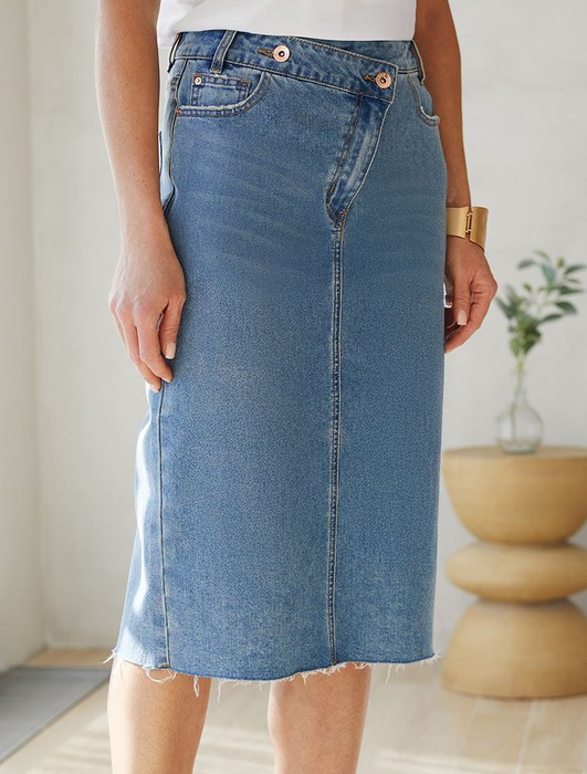 Совместные покупки Нижний Тагил Женская одежда Футболки — Юбка с ассиметричной застежкой из эластичного денима