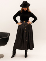 Юбка прямая из костюмной ткани. Длина миди. Верх на поясе со шлевками. Застежка по переду на молнию и кнопку на поясе. В комплекте съемный ремень. В боковых швах карманы. По низу переда юбки шлица. На боковых швах накладные карманы. Длина 85 см.