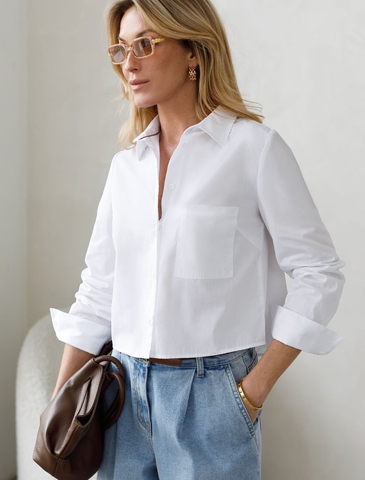 Состав: 65%Хлопок 35%ПЭ Плотность: 110 Г/м2 Параметры модели на первом фото: Рост 170, бюст 89, талия 63, бедра 92Укороченная блузка выполнена из хлопка. Лаконичная модель дополнена карманом. Изделие хорошо держит форму, что позволяет создать стильные строгие образы в офис. Чтобы подчеркнуть линию талии не теряя пропорций, сочетайте в комплекте с прямыми и широкими брюками. В более расслабленном образе – с джинсами трубами.