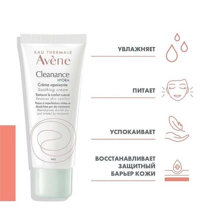 Совместные покупки Нижний Тагил Косметика и парфюмерия Кремы для лица — Успокаивающий крем для пересушинной проблемной кожи AVENE CLEANANCE HYDRA