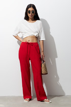 Утепленные зауженные женские брюки, цвет - брусника Арт.006D