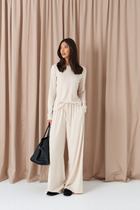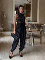 Стильные женские брючки на поясе с завышенной линией талии. Модель прямого кроя, на поясе — молния с клепкой, по бокам вшита резинка, имеются два боковых кармана.