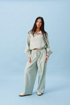 27.03 Vilatte Брюки-палаццо из хлопка с защипами D24.268 темно-оливковый