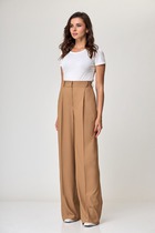 Свободные женские брюки с разрезами и боковыми карманами из плотного гладкого трикотажа интерлок. Низ обработан плоскими швами.