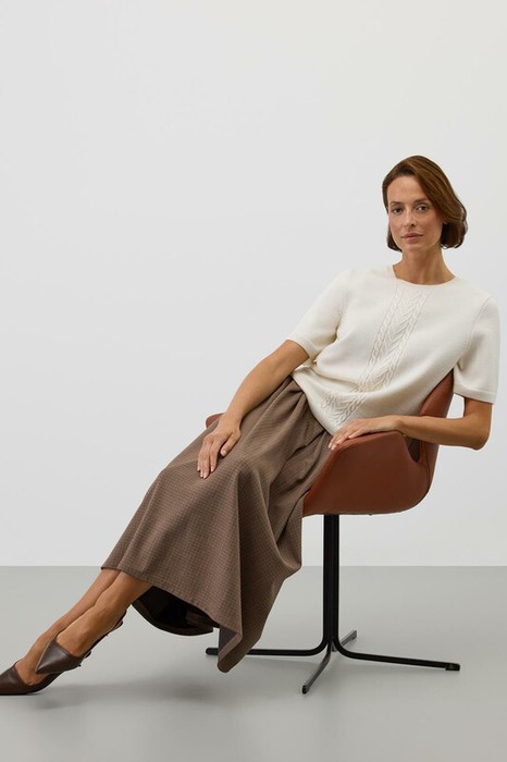 Короткий рукав и рельефная текстура придают джемперу современный вид, идеально сочетающийся с различными стилями одежды.