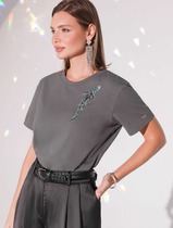 Vilatte Нарядная футболка с принтом фольгой из премиального хлопка с эластаном D