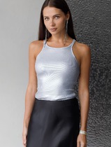 Топ с закрытым декольте из хлопка с эластаном в рубчик с матовым покрытием метал