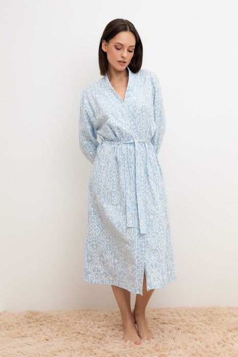 Very Neat халат жен Е 50005/голубой,кружевной узор