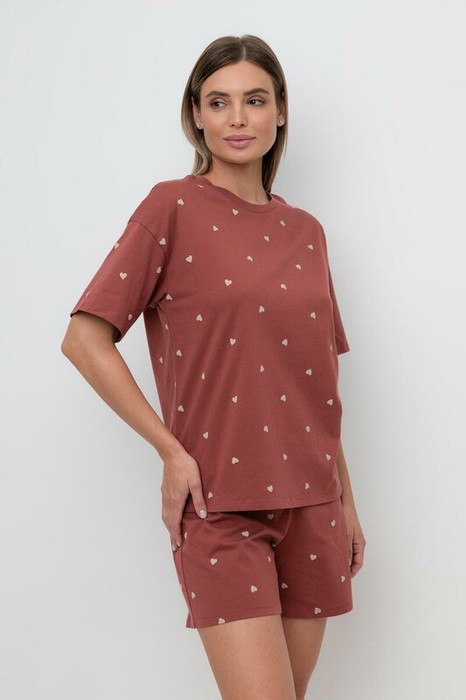 Комплект для комфортного сна и отдыха из трикотажа с нежным рисунком из 100% натурального хлопка. Футболка с короткими рукавами и спущенной линией плеча комфортно садится по фигуре. Шорты с мягким поясом на резинке. В поясе шорт атласная лента. Свободный силуэт не сковывает движения.