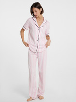 Комплект для комфортного сна и отдыха из трикотажного полотна в рубчик. Свободная футболка с V-образным вырезом. Брюки с мягким поясом на резинке удобно садятся по фигуре.