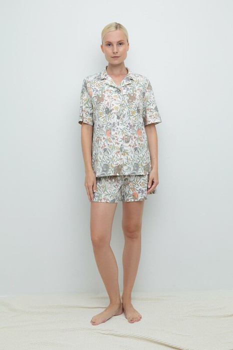 Комплект для комфортного сна и отдыха из набивного трикотажа из 100% натурального  хлопка. Рубашка с короткими рукавами на пуговицах . Шорты с мягким поясом на резинке. Гладкий материал приятен к телу, не теряет форму и позволяет коже дышать.