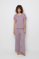 Комплект для комфортного сна из натурального хлопка. Футболка стандартной длины отделана эластичным кружевом. Шорты с мягким поясом на резинке удобно садятся по фигуре.