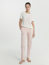 Легкий комплект приглушенного зеленого оттенка выполнен из хлопка с нежнейшим модалом. Свободный крой топа декорированный эластичным кружевом и мягкий пояс шорт обеспечивают легкость и свободу движений.