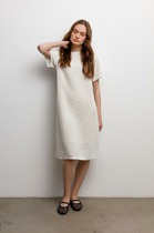 Платье ажурной вязки в молочном оттенке из итальянского хлопка. Дополняет изделие внутренний невесомый подклад из премиального бифлекса телесного цвета. Хлопок в составе сохраняет форму и дарит ощущение комфорта во время носки.