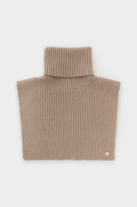 Уютная вязаная манишка с высоким воротником из шерсти и акрила. Шерсть в составе хорошо удерживает тепло, а волокна акрила делают изделие мягким и предотвращают деформацию и появление катышек. Лаконичный крой хорошо сочетается с верхней одеждой.