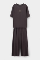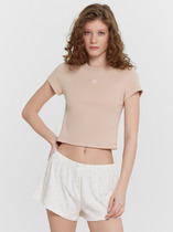 Комфортная сорочка с коротким рукавом выполнена из  высококачественного гребенного хлопка.  Эластичное кружево нежно обрамляет зону декольте, а свободный крой добавляет комфорта во время сна.