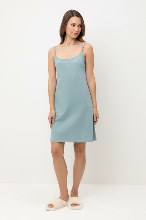 Элегантная женская сорочка с регулируемыми бретелями для комфортного сна. На груди декоративные пуговицы. Гладкий материал приятен к телу и позволяет коже дышать.