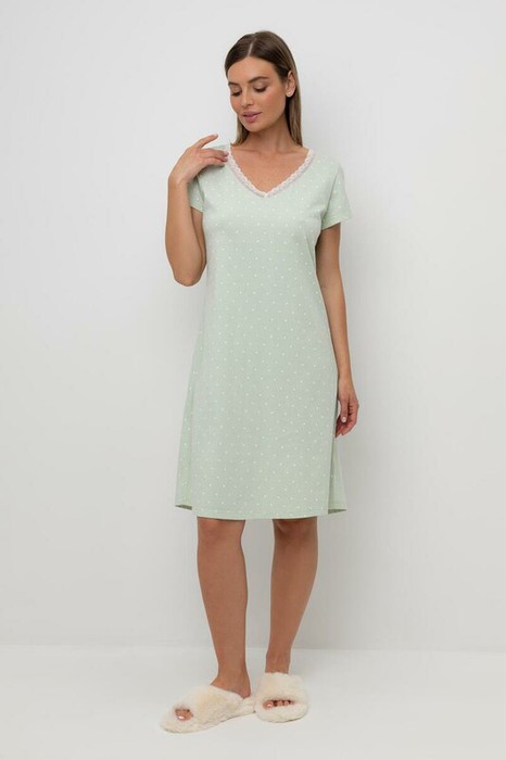 Совместные покупки Нижний Тагил Женская одежда Пижамы, халаты — Very Neat сорочка жен Е 10015/24/пастельно-зеленый,горошек