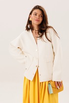 Женский укороченный жакет прямого кроя с имитацией карманов с клапаном из плотного набивного гладкого трикотажа интерлок. Гладкий и плотный материал на основе хлопка сохраняет форму.