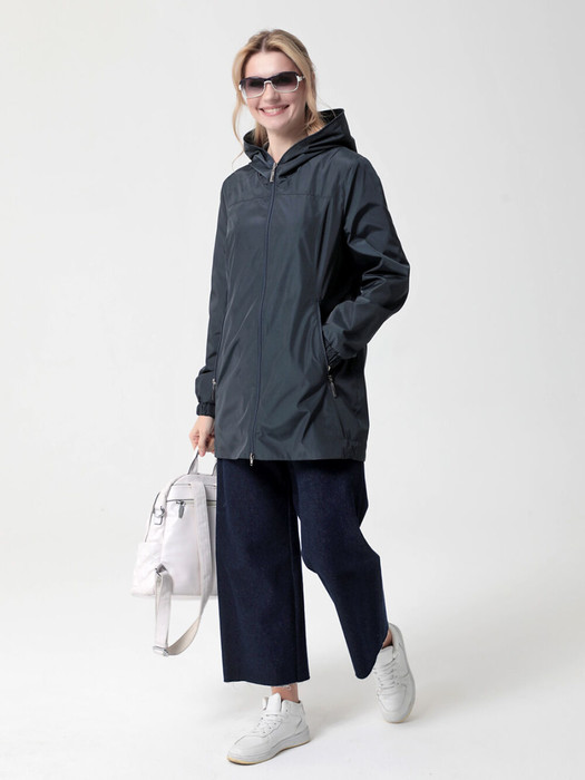 Ветровка прямого силуэта с легким приталиванием, с втачными рукавами и застежкой на двухзамковую молнию. Капюшон - втачной. Карманы, расположенные в рельефных швах, застегиваются на молнию. Ширину изделия по низу можно регулировать затяжкой. Лаконичная, комфортная модель ветровки полуспортивного стиля подходит для отдыха и повседневного использования.