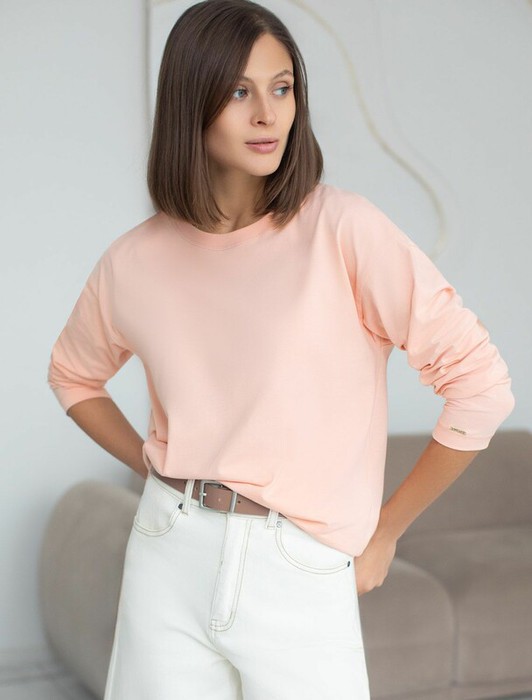 — Vilatte Базовый лонгслив из премиального хлопка с эластаном D49.147 пудровый