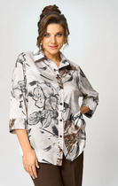 Укороченная блузка с пышными рукавами-фонариками выполнена из легкого хлопкового поплина. Супатная застежка на пуговицы из натурального перламутра. Внизу кулиса с лентами из основного полотна. В изделии будет комфортно, даже в самое жаркое время года. Подходит для любой фигуры. Сочетается в костюме с кюлотами D24.233 и юбкой D26.179